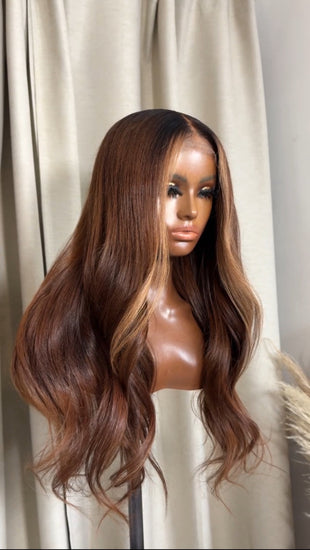 A perfect blend of Honey Blonde and Brown with romantic layers added to frame your face perfectly. comes styled and ready to wear straight out the box