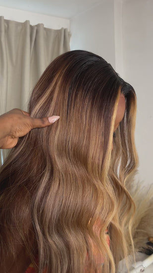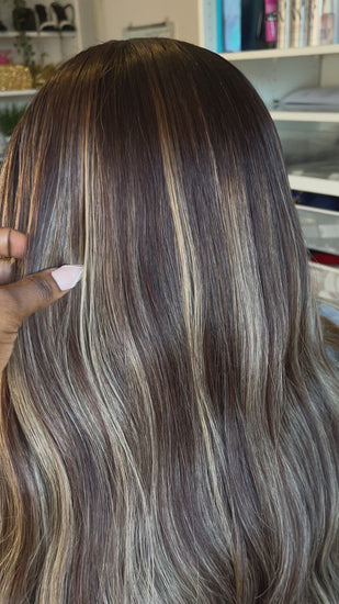 - Gorgeous, Blond unit that is grounded by brown tones, sure to make you look and feel comfident and expensive. A Wig like no other, exclusive and expensive looking unit.