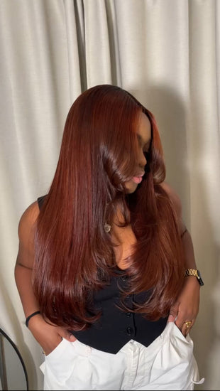 A well balanced ginger that gives the perfect amount of brightness but elegantly done with face frame layers to shape the face and allow movement. This unit can be worn whether at work or on a date or dinner with the girls, this unit is perfect for every occasion.